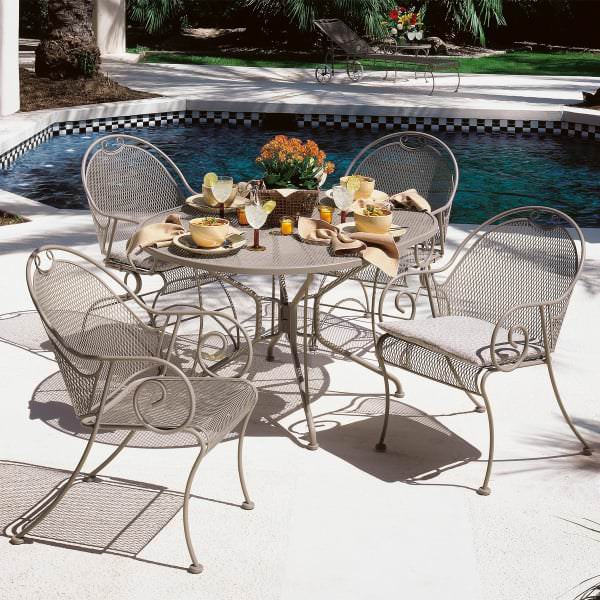 Woodard Windflower Mesh Casual Metal Wrought Iron Dining Set By Woodard 1383 85 Wrought Iron Patio Furniture Wrought Iron Patio Chairs Iron Patio Furniture