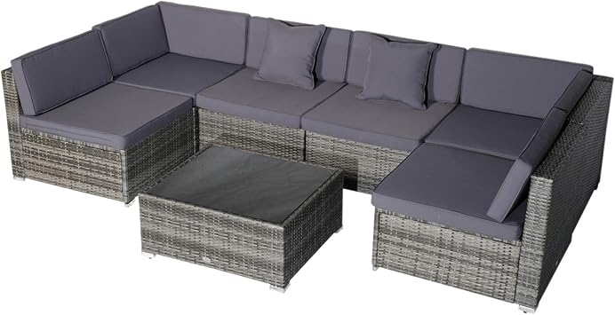 Amazon Com Outsunny 7 Piece Outdoor Patio Furniture Set With Modern Rattan Wicker Perfect For Garden Deck And Backyard Grey Garden Outdoor